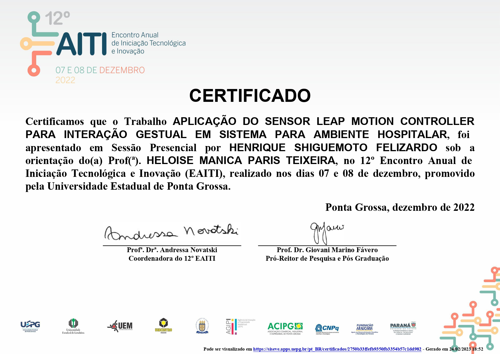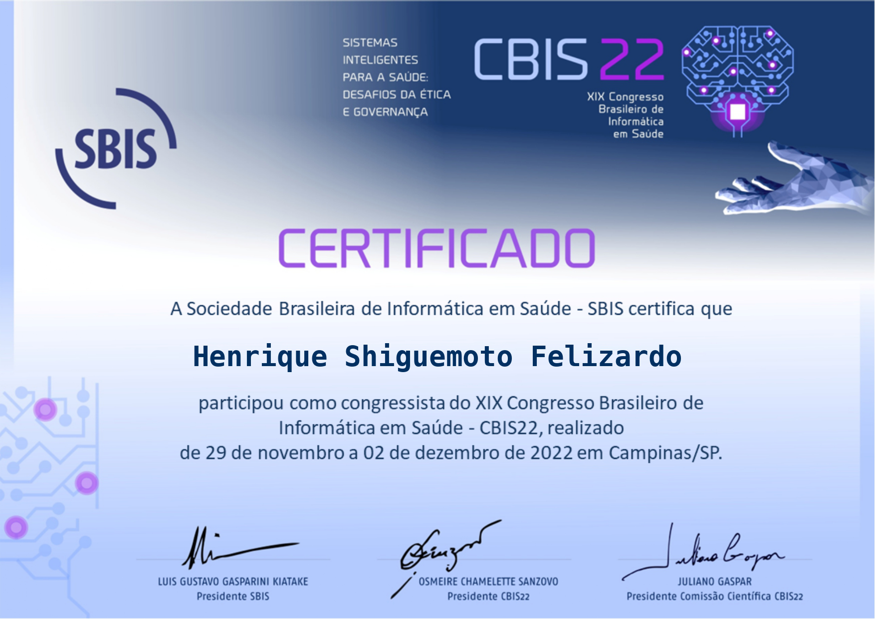Attended the 19th Brazilian Congress of Health Informatics (CBIS), organized by SBIS, to present my Gesture Recognition for Health Information Systems project with the objective of creating a system with the Leap Motion sensor to substitute traditional touch-based interaction systems with computers such as touchpads, mouses and keyboards, this was to prevent the proliferation of disease through touch, specially after the COVID-19 outbreak in Brazil.