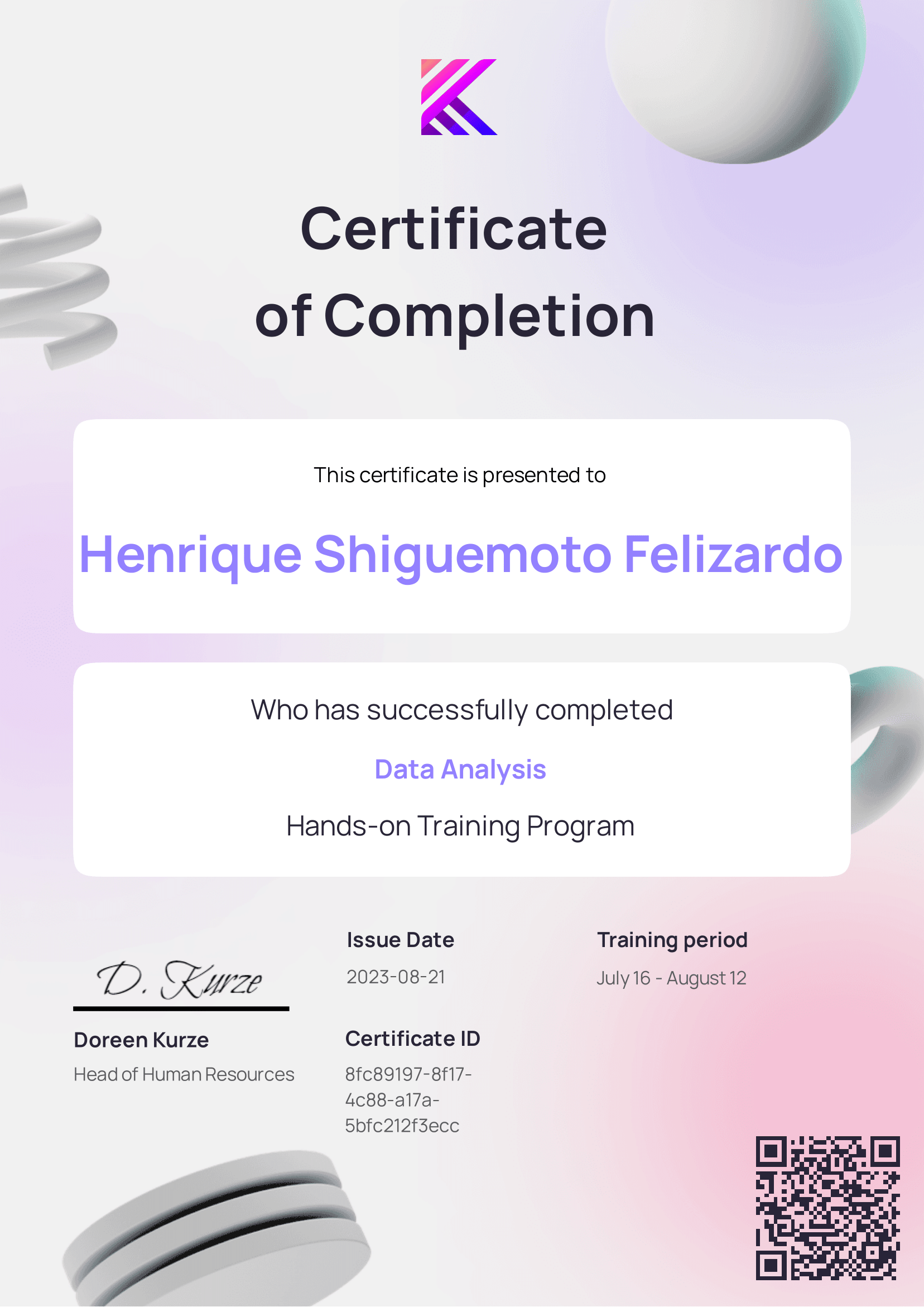 Completed a 2-month international Data Analysis training program with Kreativstorm, collaborating with a diverse team of students and professional data analysts from around the world. Together, we tackled complex case studies, including projects analyzing household behavior in the UK.