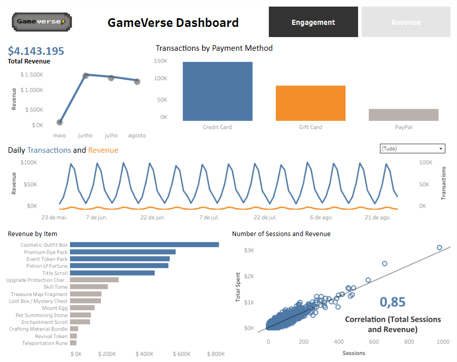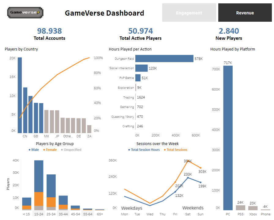 Game Studio Analysis Case Study to understand playerbase engagement and game revenue.