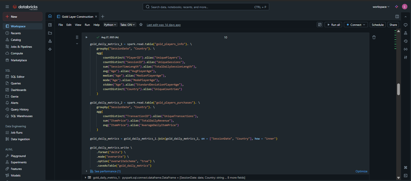 - Created databricks ETL pipeline with Spark using the medallion architecture.