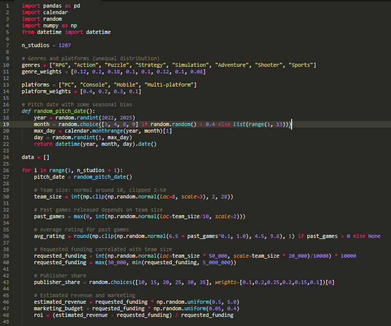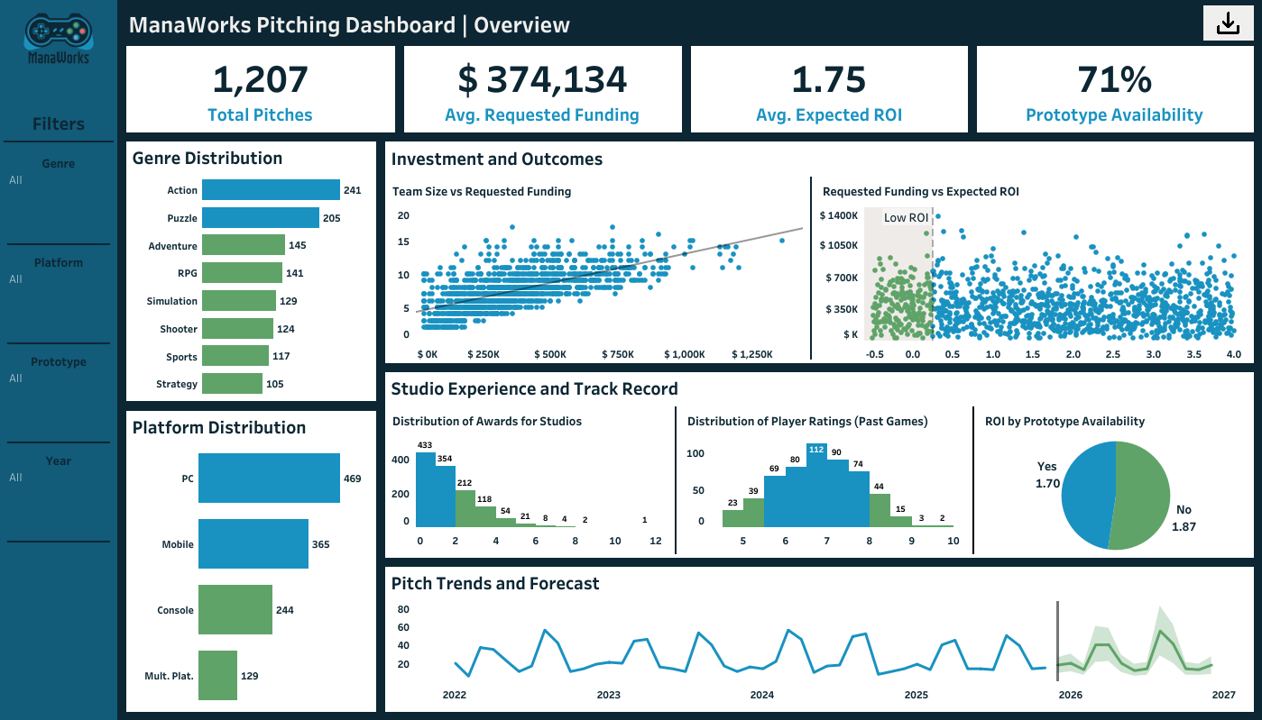 Game Publisher Pitching Dashboard to understand patterns of project pitches.