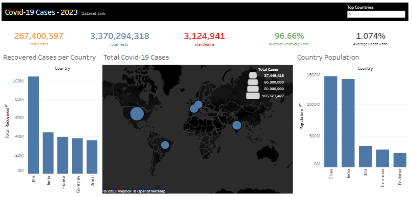 Tableau dashboards built from public datasets, focusing on clear KPIs and comprehension.